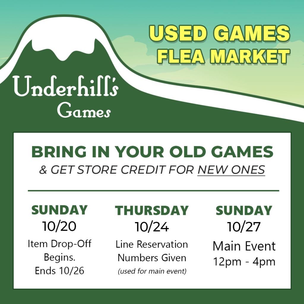 The 2024 Flea Market has been scheduled for Sunday Oct 27th. If you’d like to sell your gently used games you can start bringing them to the shop on Sunday Oct 20th. If you have any questions please call the store at (330)-923-3845.